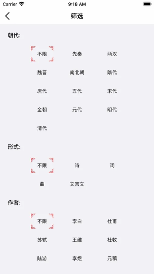 包括唐诗、宋词、元曲、古诗、现代诗、文言文、楚辞、唐诗、宋词,同时提供诗词的注解、释义和朗读鉴赏。