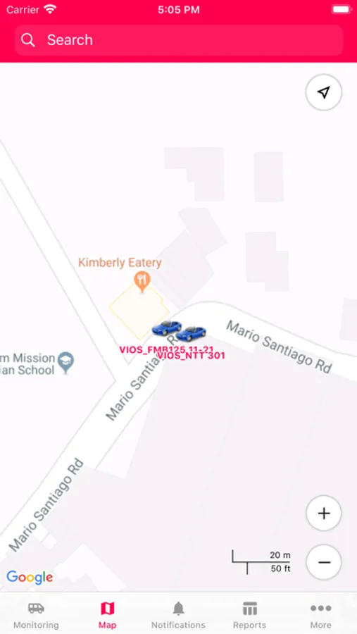 - Map mode. Access units, geofences, tracks and event markers on the map with the option to detect your own location.
