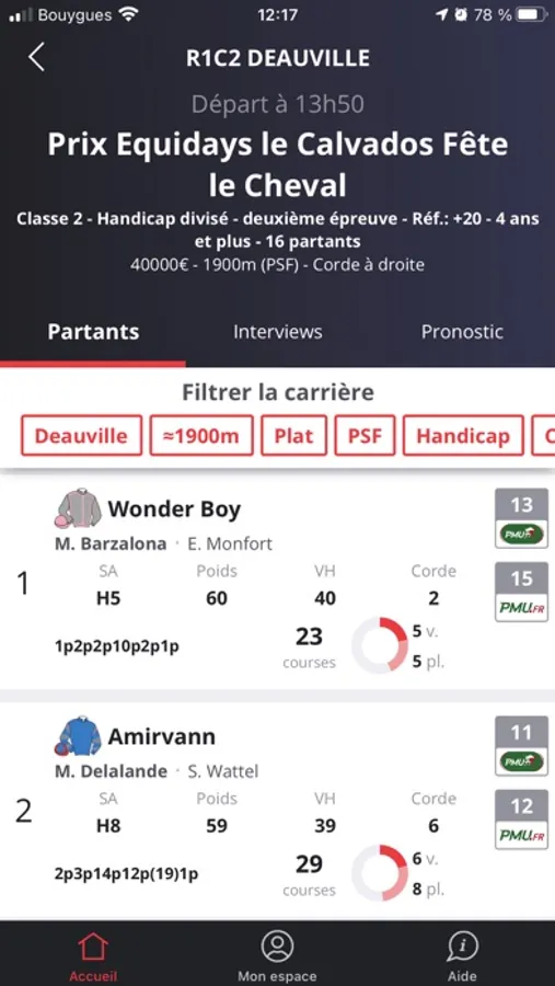 Naviguez facilement et simplement entre le programme, le tableau des partants, la fiche cheval et les performances détaillées et retrouvez des informations claires et synthétiques.