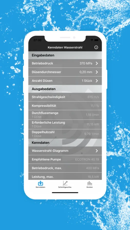 The Waterjet Calculator is of interest to users of waterjet cutting systems who want to quickly and easily identify waterjet-specific characteristics, cutting speeds and machine operating costs. The application is suitable for Maximator JET cutting machines and is also universally applicable. People interested in the innovative technology of waterjet cutting can also employ this useful tool to learn about the basics of the technology.