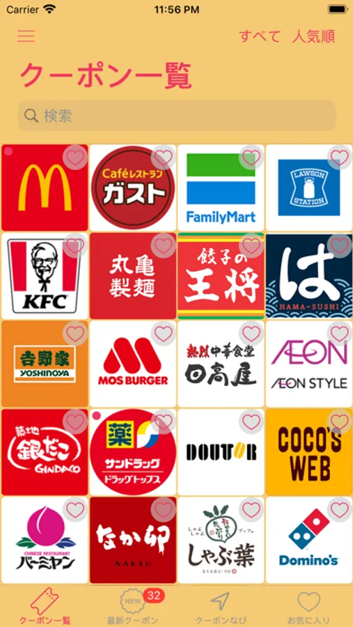 実際のクーポンは各アプリで提供されているので、各アプリをご利用ください。