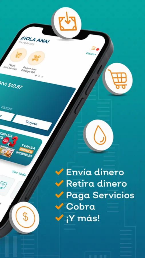 El app que te facilita cobrar, pagar y retirar de forma fácil, rápida y segura en Ecuador.