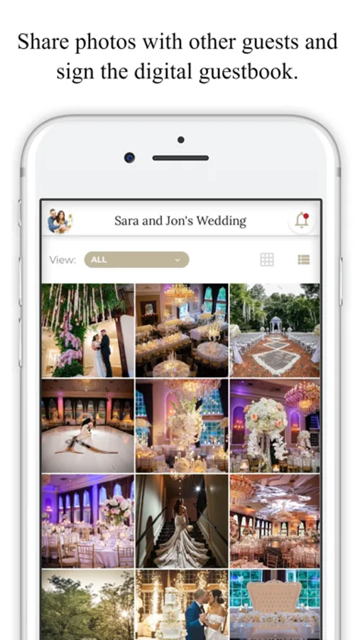 ACCESS THE LIVE FEED: Everyone attending the same event will have access to a shared gallery. Scroll through photos and guestbook notes uploaded by other guests while you’re there!
