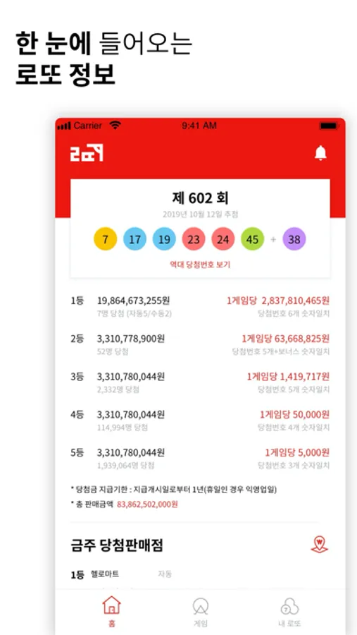 금주 로또 당첨 번호, 금액, 장소를 한눈에 보고