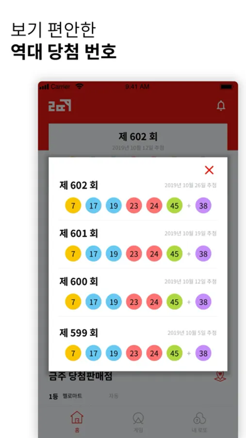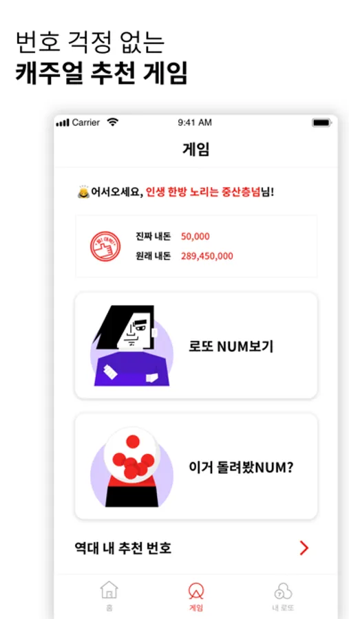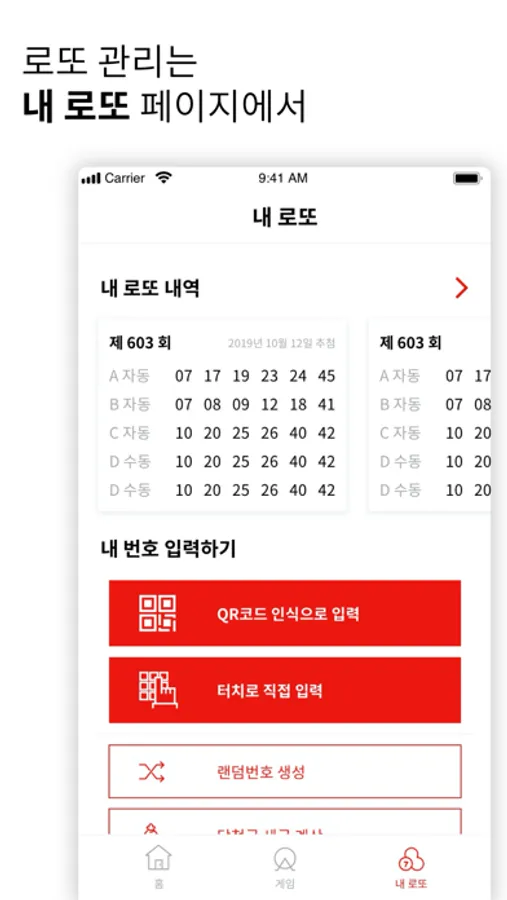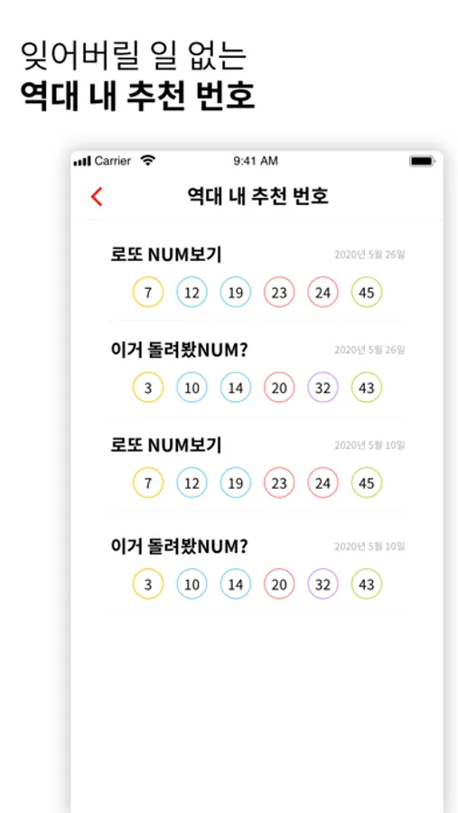 * 게임을 통해 추천 받았던 번호들을 볼 수 있는 "역대 내 추천 번호"