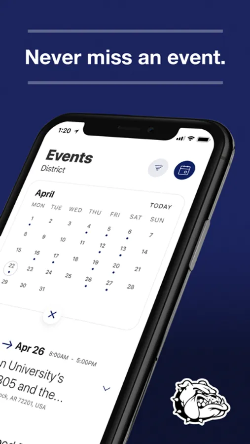 The event section shows a list of events throughout the district. Users can add an event to your calendar to share the event with friends and family with one tap.