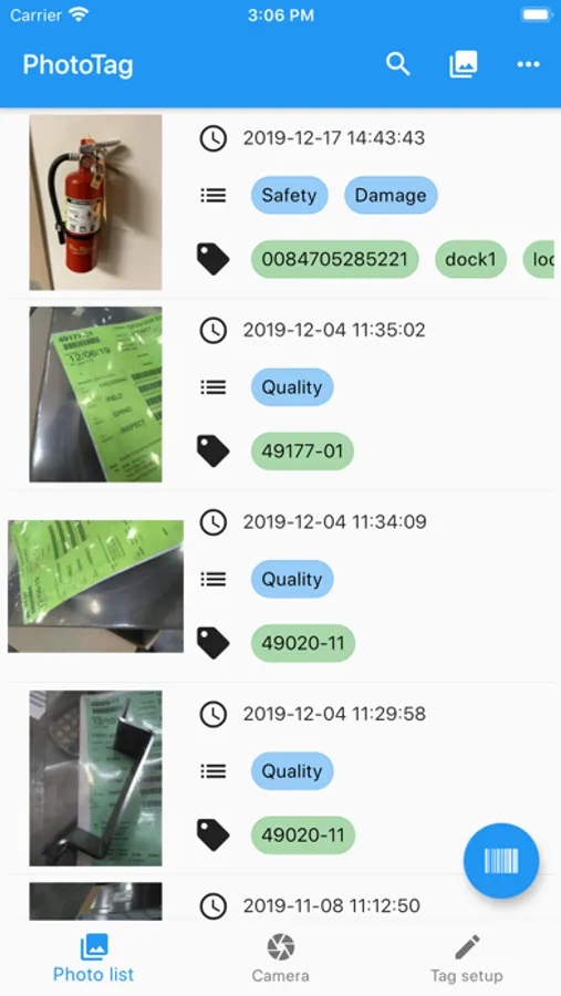 PhotoTag is a mobile and cloud application to help you capture, organize, and find photos. Designed primarily as a business application, PhotoTag uses barcodes, manual tags, and categories to manage photos.