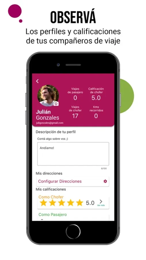 Realizar carpooling con Andiamo es seguro ya que tanto conductores como pasajeros cuentan con una calificación basada en opiniones de personas que compartieron auto previamente con ellos. Además los pasajeros tienen información de dónde se encuentra su conductor en tiempo real.