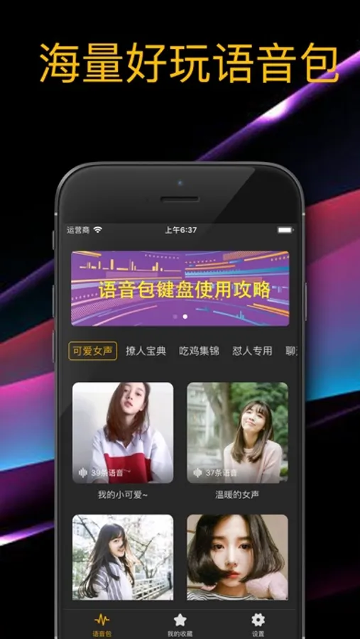 皮皮语音包是一款超级好用的语音包应用,提供海量聊天游戏开黑语音包,无论是聊天,还是王者吃鸡游戏开黑,轻松语音聊天交友,快来下载试试吧