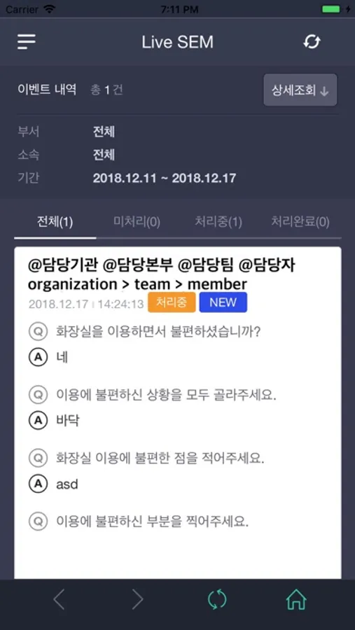 Live SEM은 다양한 서비스 현장에서 수집되는 고객의 목소리(VOC)를 담당자가 모바일을 통해 실시간으로 확인하여 대응할 수 있도록 해주는 서비스 환경 관리 시스템입니다.
