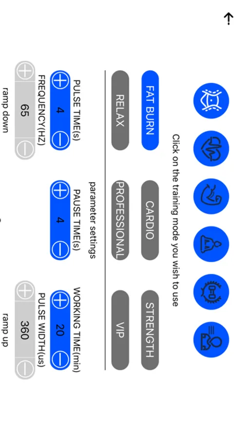 EMSFIT APP is used to control the steady and continuous output of electrical pulse of smart box. EMS technology is to simulate human brain electric signal to stimulate motor nerve with the low frequency pulse current. Through controlling the pulse current safety regulation such as frequency, interval time, time, and adjusting the contraction of muscle strength, EMS can command group muscles to work together, achieve development of muscle strength, reduce fat in shape, and realize the treatment of muscle tissue injury.