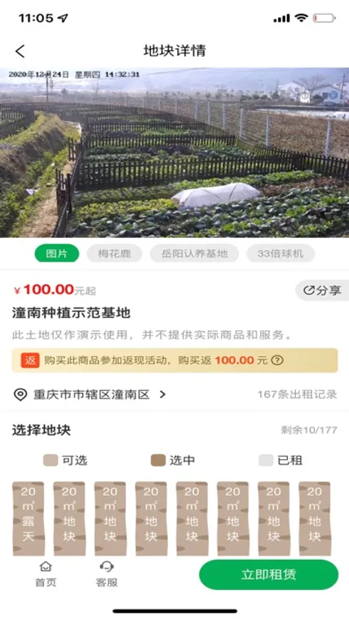 智慧农场v3版的租地种植功能十分强大。用户选择心仪的土地租赁并种下喜欢的种子后,可以像玩游戏一样发出浇水、施肥、除草等指令,通过视频直播跟踪种植观察蔬菜的生长情况,最后,成熟收获的蔬菜会通过物流配送到用户手中。