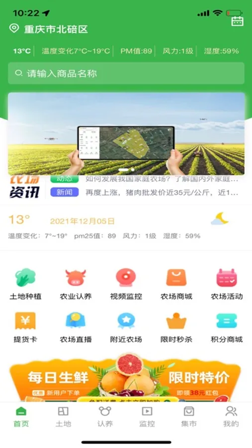 还在害怕转基因食品和农药残留吗?智慧农场商城为用户提供安全放心、高品质的农副产品,不论是蔬菜水果,还是禽畜肉蛋,都能在这里找到直销商户同时能够实时直播农场基地,买到放心产品。