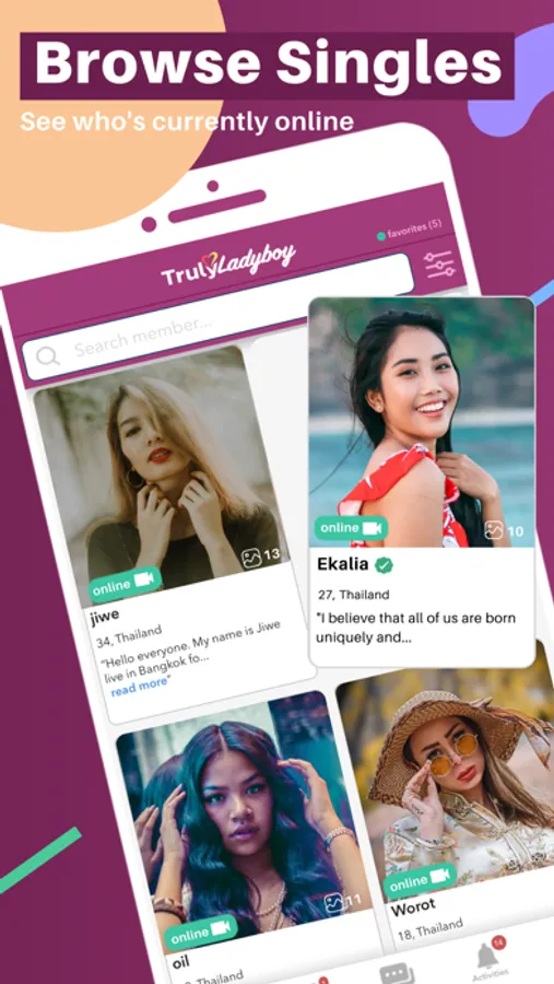 Quick, fun, and easy Ladyboy and Trans online dating within your reach. That’s what TrulyLadyboy is all about. Discover the joy of finding your match through browsing, sending interests, chatting, and more. Start with signing up for your account, securing your profile, go through the searches that grabs your interests, and chat with online singles. It’s that easy.