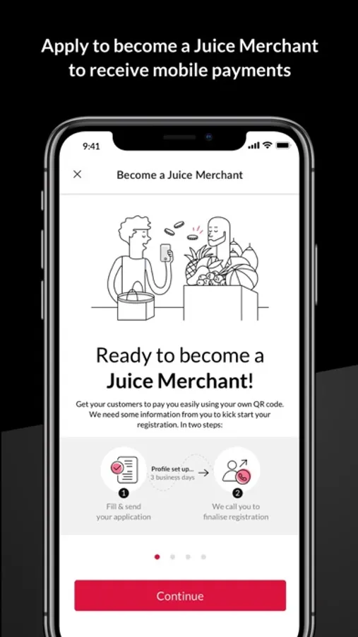 Become a merchant: Want to register as a merchant? Send us your request through the app