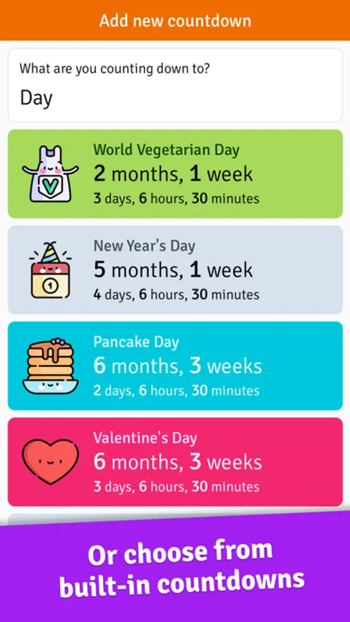 Choose from the built-in countdowns or create your own, to count down to absolutely anything!