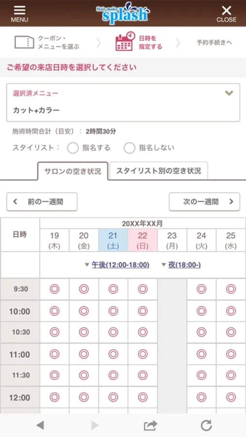 ご希望のメニューから日時を指定して送信するだけでご予約頂けます。
