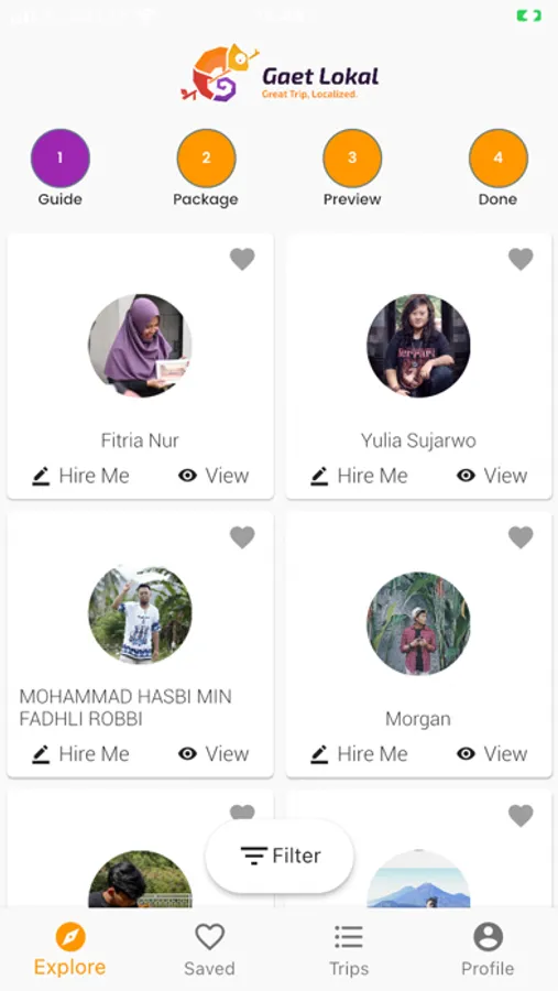 Choose the most suitable Gaet to explore the new place based on their personality, rating, review also experience.