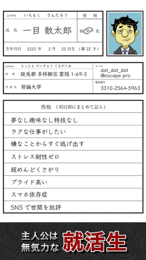 そんな彼は模擬面接中にもかかわらず、嫌気が差して突然逃げ出してしまう…