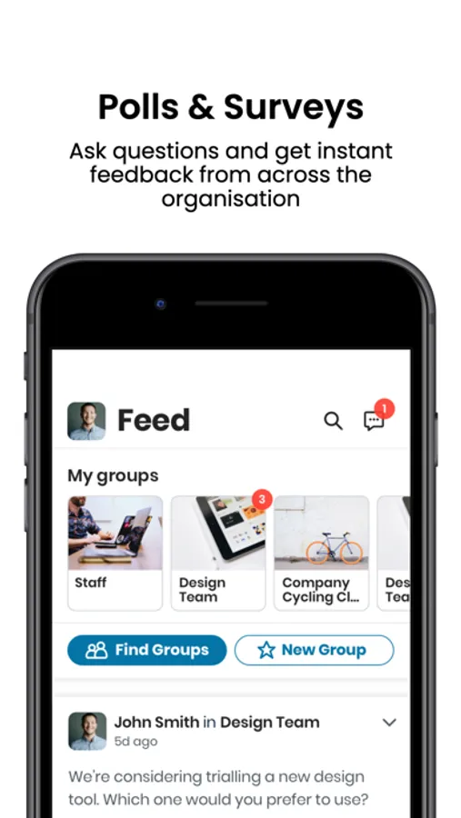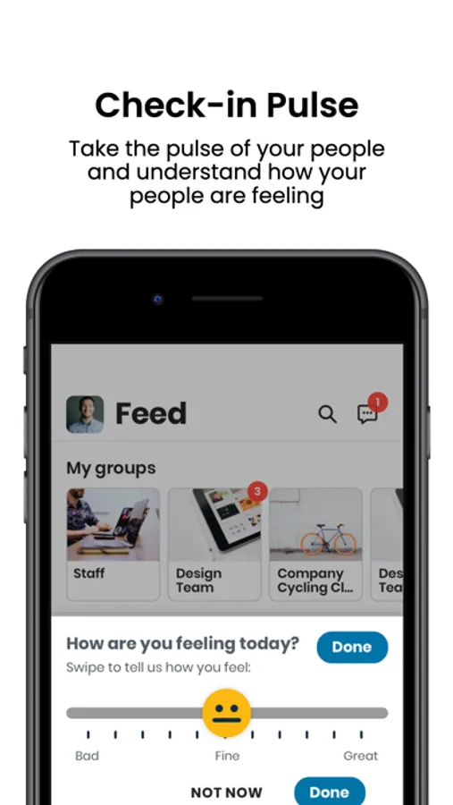 • Help to build employee community across your organisation with personalised news feeds, groups, events and challenges available to everyone.