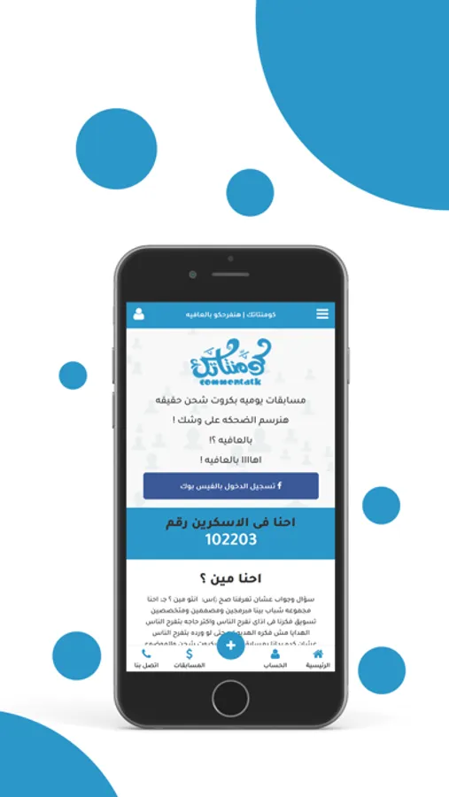 تطبيق يخص موقع وصفحه كومنتاتك - Commentatk للمساعده علي ارسال الاسكرينات يقوم العضو بارسال الاسكرينات على صفحه كومنتاتك - Commentatk او مواقف كومنتاتك - Mwakef Commentatk او اسكرين كوميدي - Screen Comedy او كوميكس كومنتاتك - Commentatk Comics او اسلاميات كومنتاتك - Commentatk Islamic ويتم مراجعتها بواسطه ادمنز الصفحها وفى حاله كانت الصوره لا تخالف شروط التطبيق يتم ارسال SMS للعميل بان الصوره تمت الموافقه عليها وسيتم نشرها فى الوقت المحدد بعرض جميع الاسكرينات التي يتم ارسالها بواسطه التطبيق على صفحه صفحه كومنتاتك - Commentatk او مواقف كومنتاتك - Mwakef Commentatk او اسكرين كوميدي - Screen Comedy او كوميكس كومنتاتك - Commentatk Comics او اسلاميات كومنتاتك - Commentatk Islamic وعمل مسابقات يوميه بكروت شحن يقوم اداره التطبيق باضافه صوره كوميديه يومياً واحسن تعليق على المسابقه يفوز بكارت شحن مجاناً ويتم ارسال رقم الكارت وصورته على البريد الالكتروني ورقم الجوال واشعار على الموبايل ..