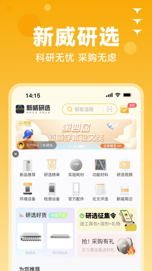 新威研选了解科研采购的痛点,熟悉供应管理的难点,我们的使命就是为用户打造一个理想的科研实验空间,让用户尽享科研生活的美好。我们致力于做全世界最懂科研人的APP,不断倾听和满足用户需求,引导并超越用户需求,推动科研供应链的健康发展。