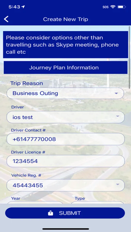 The Road Travel App was created to promote a workplace free from accidents and health hazards by increasing road safety while you are travelling for business between various sites and clients.