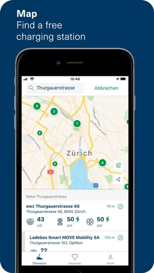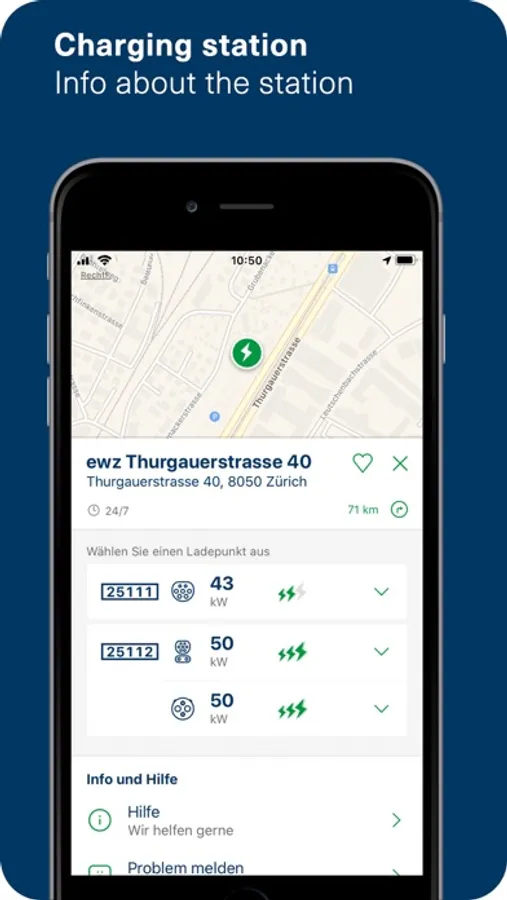 Charge your electric car quickly and easily with the ewz mobile app.