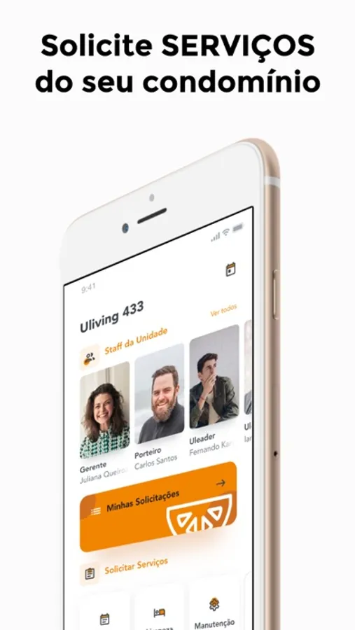 Aqui você consegue solicitar serviços de limpeza, manutenção, reservar espaços, cadastrar visitas, acessar o Orange Club e muito mais.
