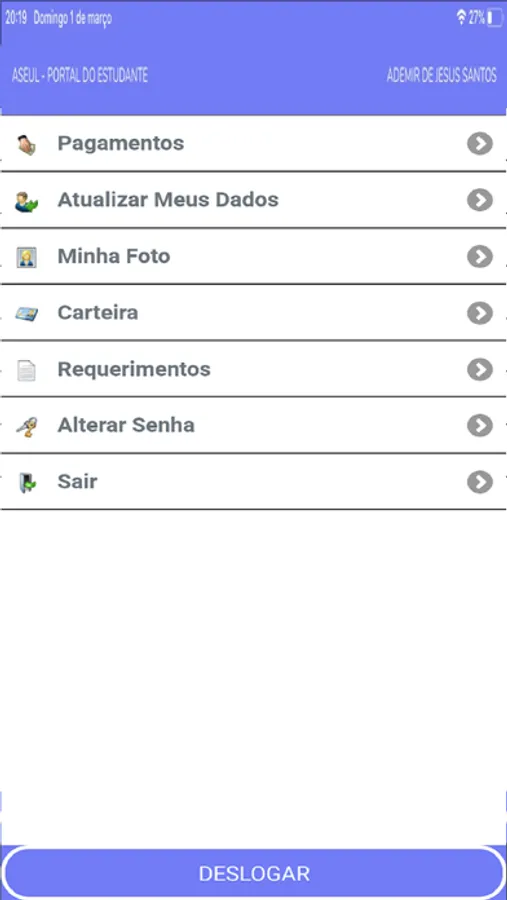 Com o aplicativo é possível ter acesso ao Portal do Estudante com todas as suas funcionalidades.