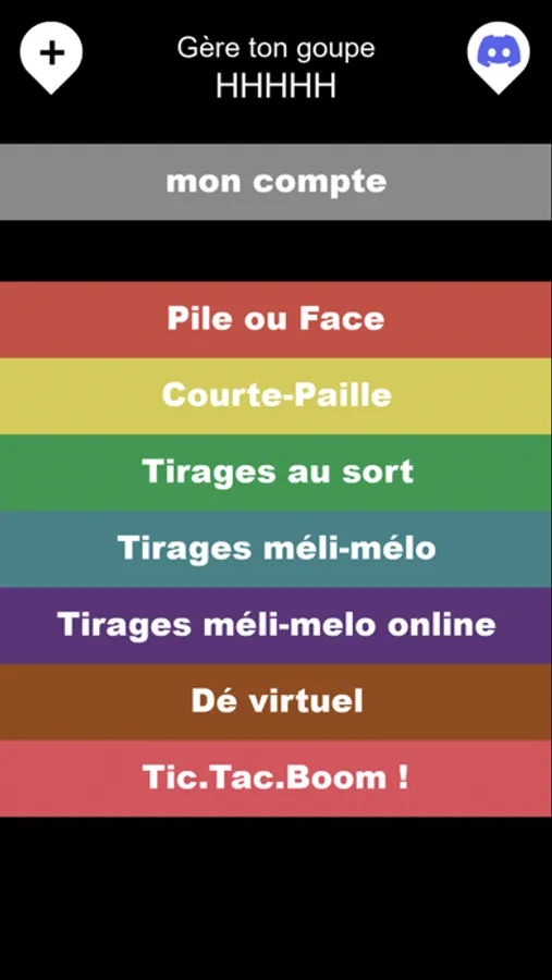 _ Méli-mélo-online or "Mystery", online mode (with internet), create a draw and share the draw ID with your friends, participants (other players) must download the application to join the draw (thanks to the identifier of the draw, participation is automatic), once the Mystery draw has been launched, each participant will be randomly designated a participant according to the added constraints.