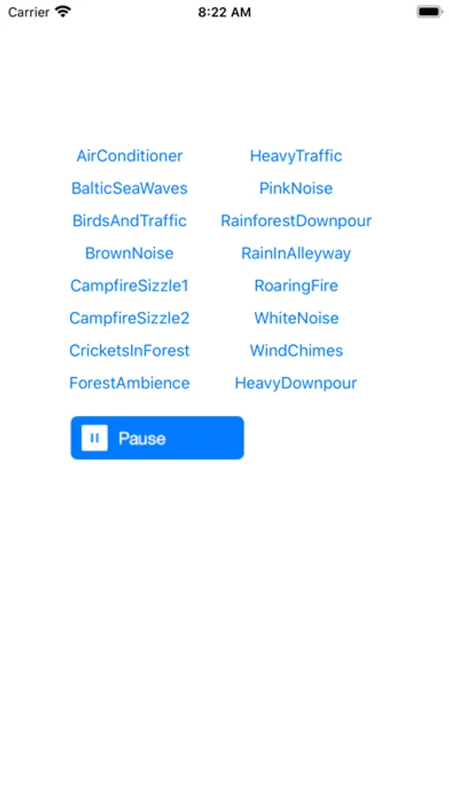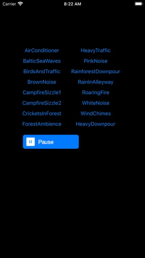 This app contains 16 different sounds that the user can choose from to listen to. These sounds are set on a continuous loop by default and can be paused at any time.