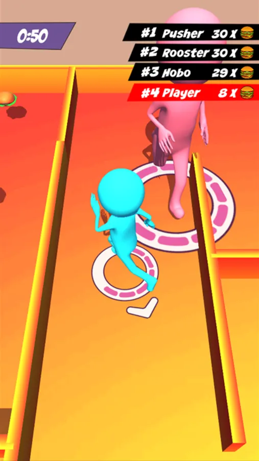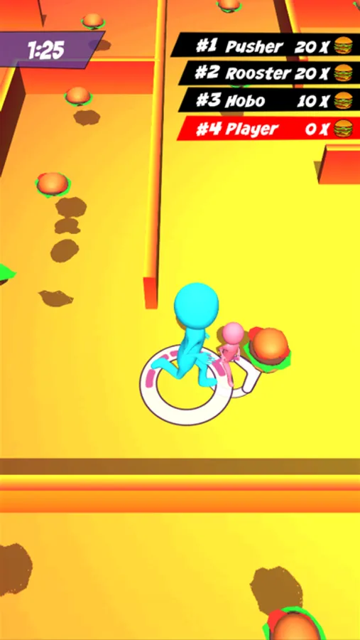 Enter the maze arena and eat as many burgers as possible, as fast as possible.
