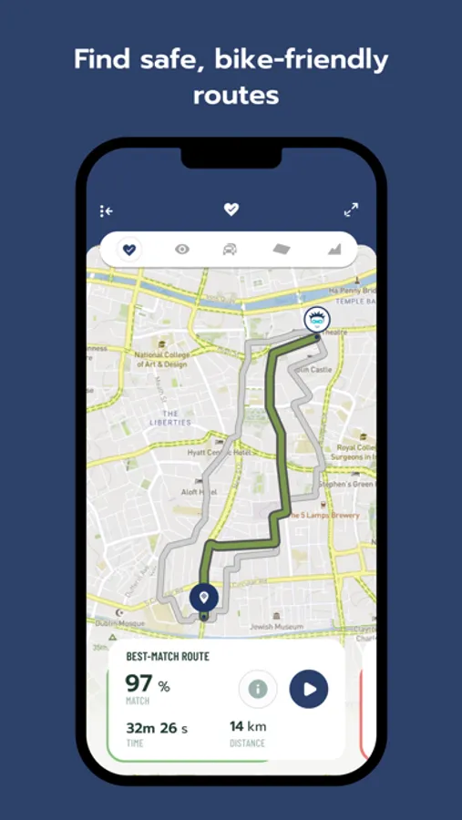 Dublin Cycling Buddy (DCB) helps make your cycle rides around Dublin safer and more enjoyable! Built using a new community-powered cycling navigation engine, the app will find safe, bike-friendly routes for your commuting and recreational rides. The app's voice turn-by-turn navigation will then guide you along the routes, alerting you about possible dangers along the route. It utilises large data sets, including GPS trajectories and crowdsourced issue reports, with a data engine that analyses the collected data to produce these optimised routes.