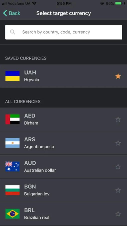 50+ world currencies: AED, ARS, AUD, BGN, BRL, BSD, CAD, CHF, CLP, CNY, COP, CZK, DKK, DOP, EGP, EUR, FJD, GBP, GTQ, HKD, HRK, HUF, IDR, ILS, INR, ISK, JPY, KRW, KZT, MXN, MYR, NOK, NZD, PAB, PEN, PHP, PKR, PLN, PYG, RON, RUB, SAR, SEK, SGD, THB, TRY, TWD, UAH, USD, UYU, VND, ZAR