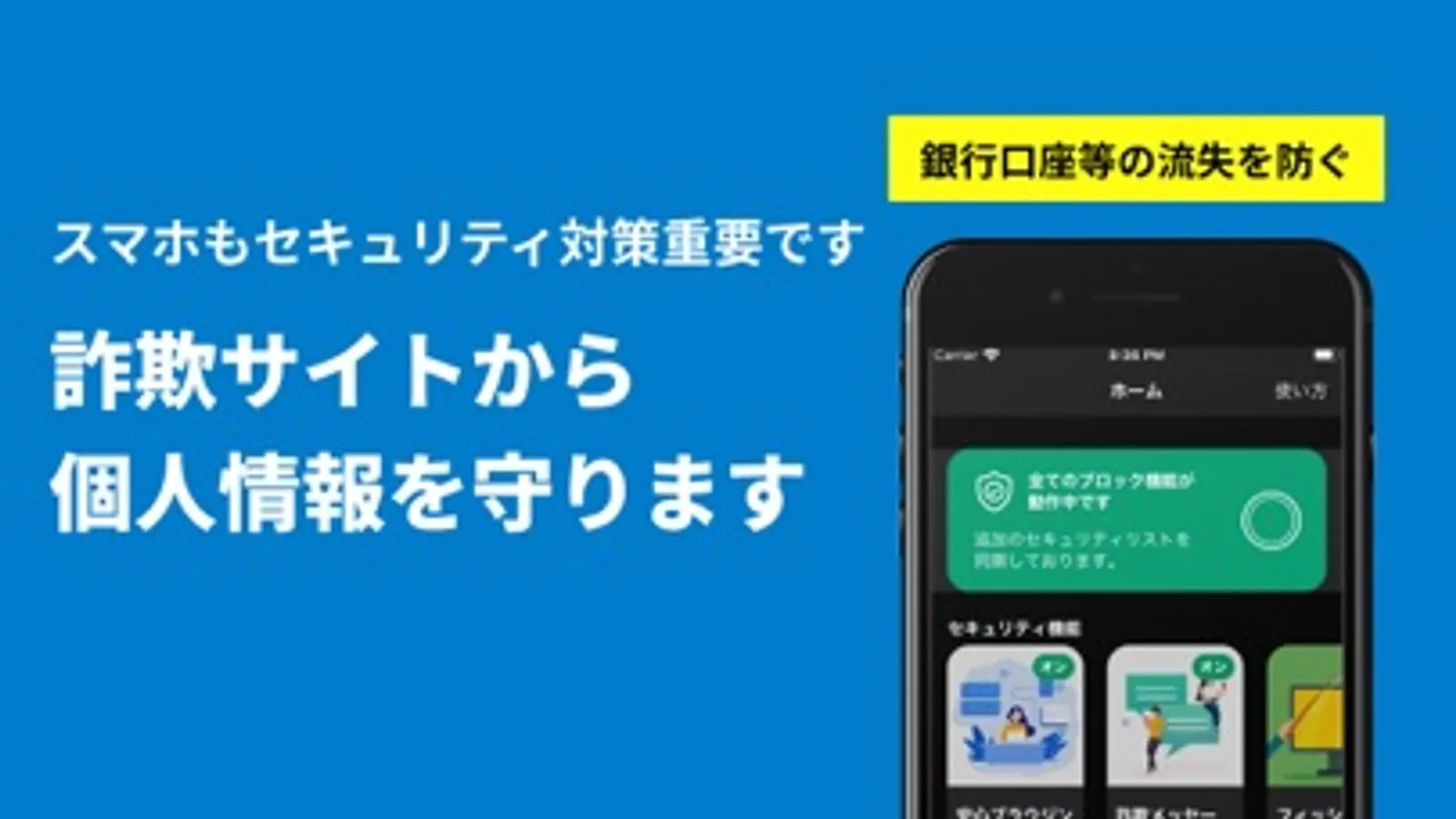 メールやメッセージに来る、フィッシングサイトや詐欺サイトを自動でブロックします。