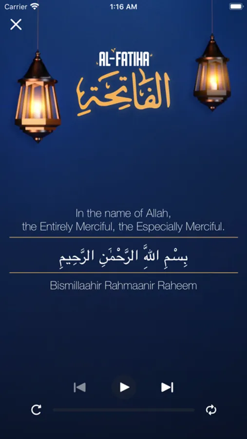 The audio recitations will help you with the pronunciation of the verses. Repeat and loop functions are included.