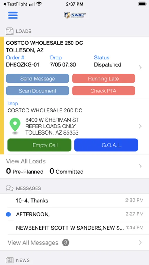 Interested in becoming a driver for Swift? Download the Pointe mobile app to start communicating with a recruiter today. Already a Swift driver? The Pointe mobile application can also be used on in-cab tablets and on any personal device when out of the cab, as well as for would-be drivers and trainees interested in driving for Swift. With Pointe, you can view load and stop detail, accept & decline loads, view maps, turn-by-turn navigation, send & receive messages, scan & send documents, view Swift news, and much more … all anywhere you happen to be.