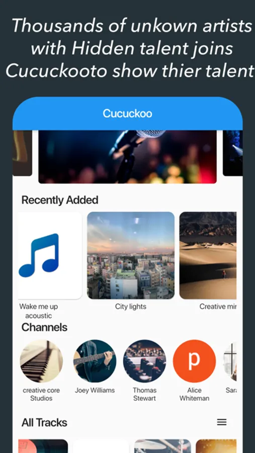 Love singing songs or Writing Lyrics or Want to become a Music Artist. Download Cucuckoo and showcase your talent to the world and get recognised. Come join the community of unknown artists with hidden talent and beat the competitions. Record your own songs, music, lyrics, Stand up comedies, mimicking and share in the app and let the world listen to you. You have a chance to become a CUCUCKOO Celebrity.
