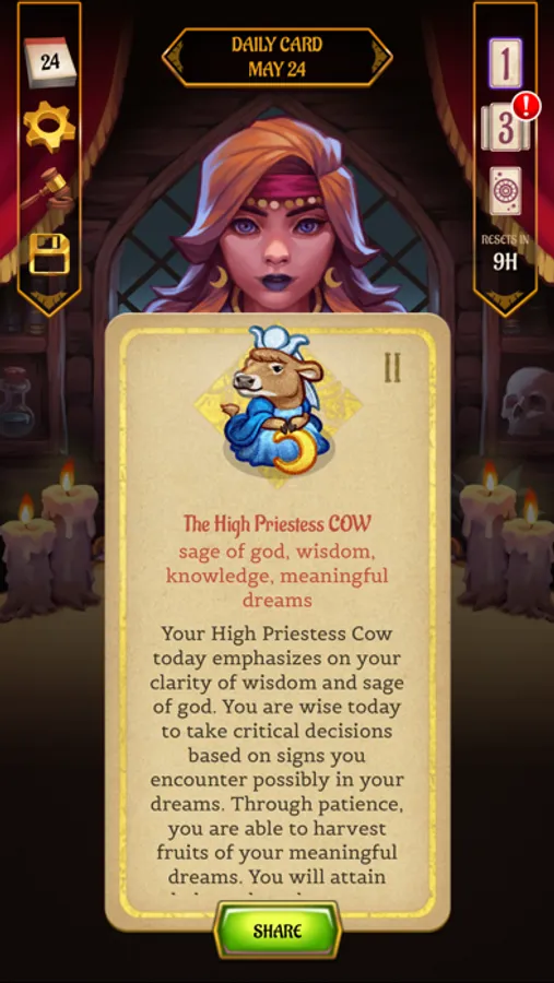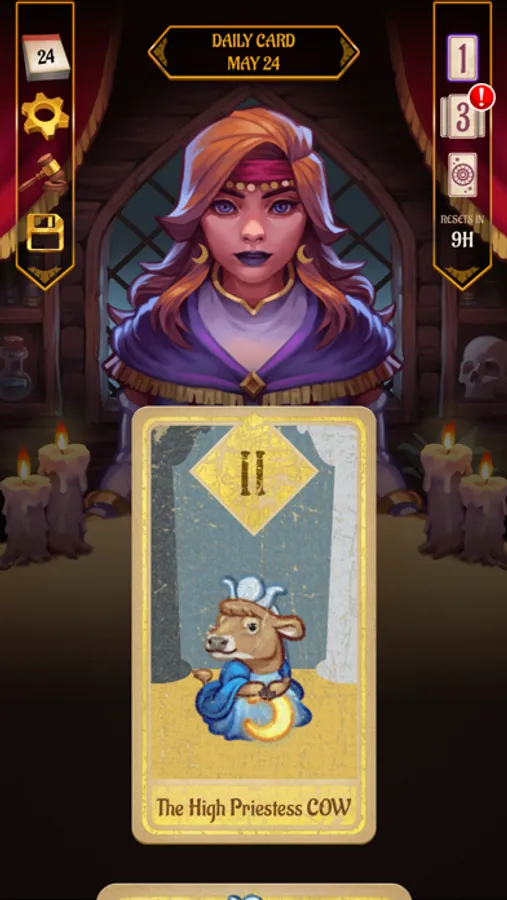 Mystical Melonie is a FREE NO ADs Major Arcana Tarot deck. Melonie, from the popular social farming game Big Barn World, will give you a free daily and weekly reading based on your Tarot card selections. The Tarot cards possess a unique style in that each Major Arcana card is represented by an animal from Big Barn World. For example, Strength is represented by a Lion which reflects a level of courage and bravery.