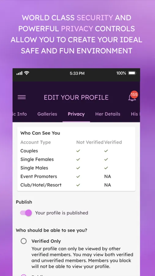 - Lust List: let up to 10 other couples or singles know that they really caught your eye by adding them to your excusive Lust List