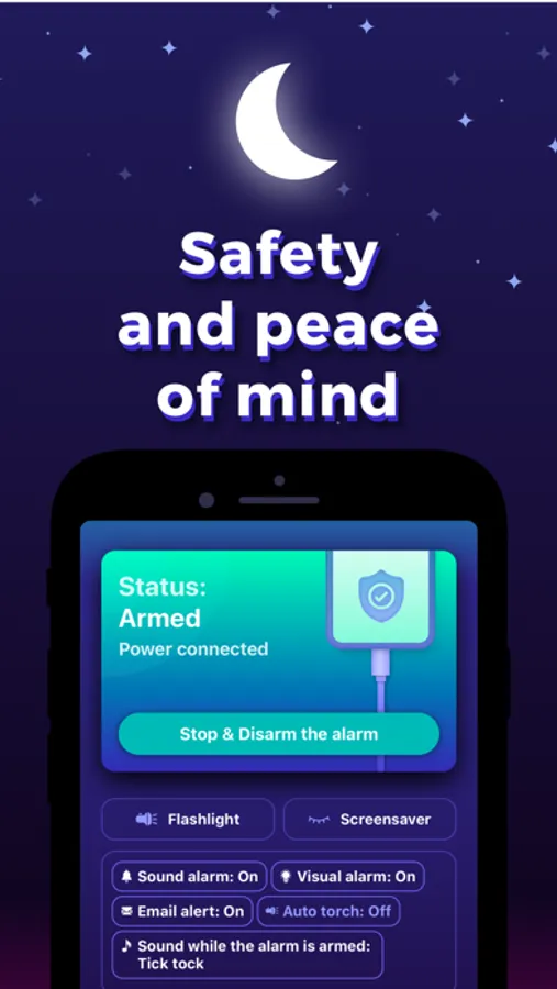 You can also use this app as a handy anti-theft alarm if you are charging your device in a public space (like an airport)! If somebody disconnects your device from the charging cable, the alarm will sound.