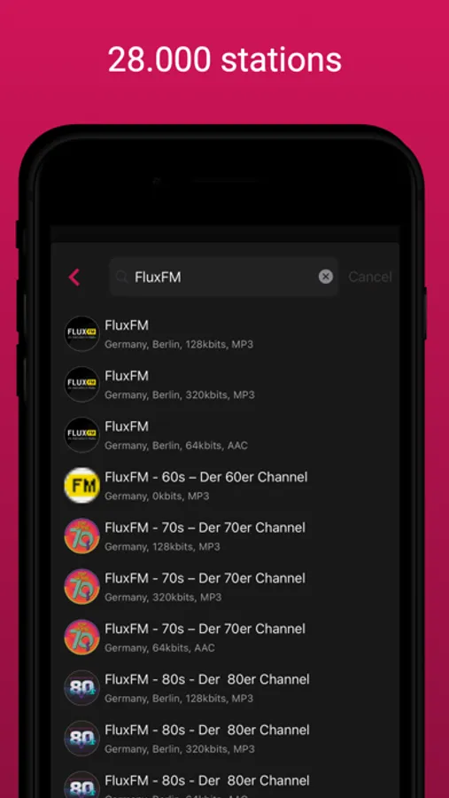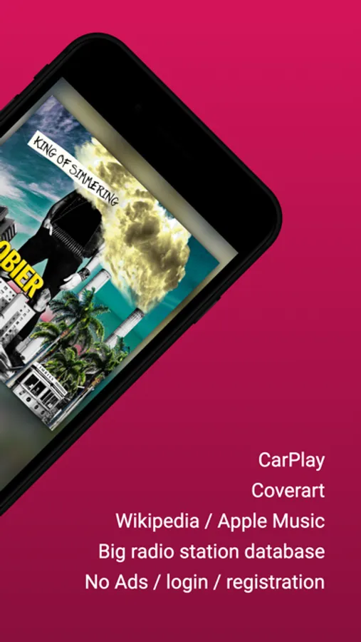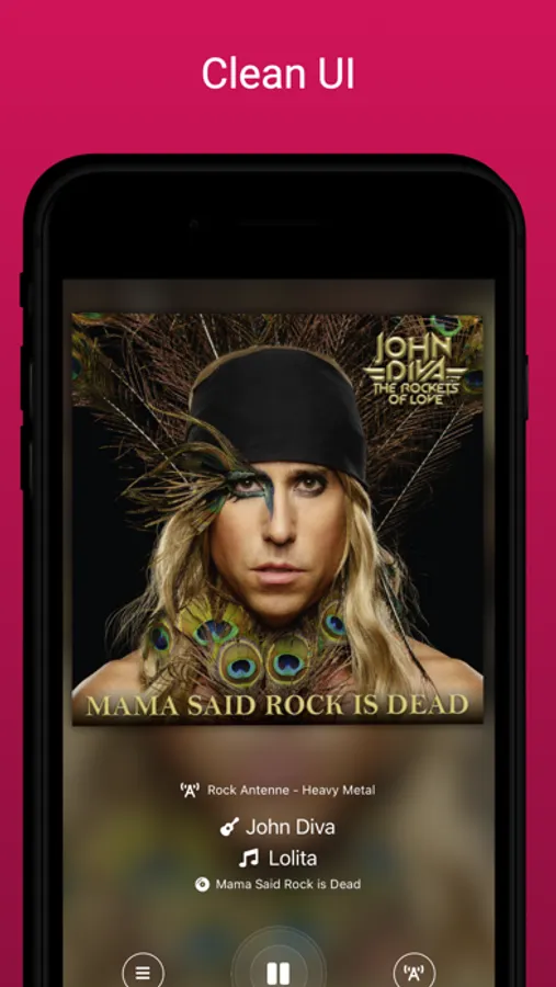 Simple choose your radio stations and listen to them with few taps. The artist, track, album with cover is displayed in a beautiful and clean user interface.