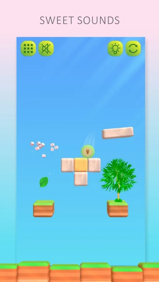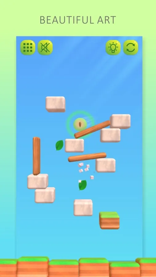 The goal of the game is simple: you need to collect all leafs and make the seed reach the block of earth using simple physical logic. The early levels will teach you how to play the game and go through some basic concepts. Multiple ways to solve each puzzle, can you find the best solution? Your brains are the main key in this game.