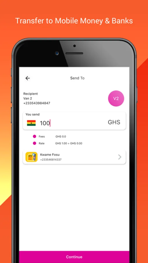 Send money from your mobile money wallets, bank cards to all other mobile money wallets and bank accounts in Ghana, Nigeria and Kenya.