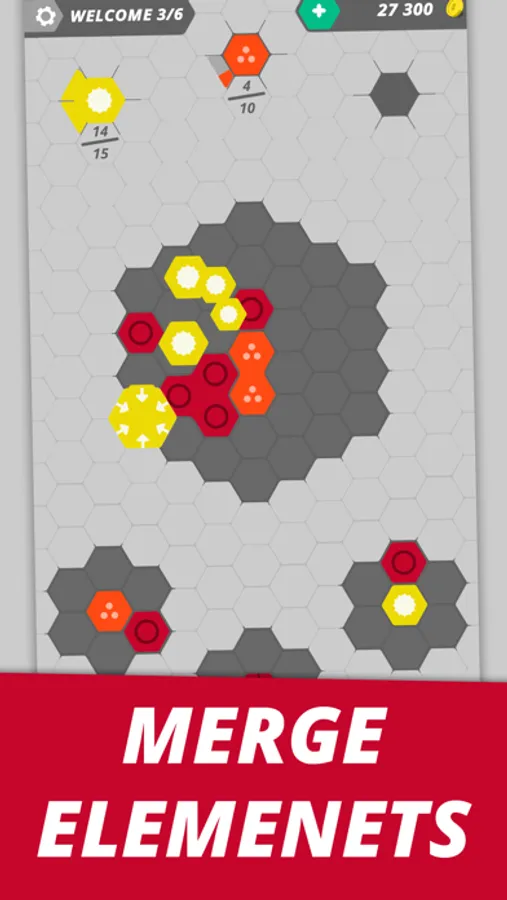 Try to connect & merge as many hexagonal elements as you can and reach for highscore!