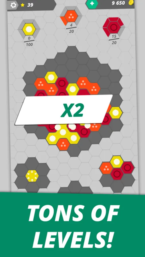 • Bonus 2X combo points for each hexagon when 2 elements are connected at once