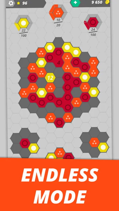 • When there is no more space left or you cannot connect or merge anymore hexagons on the grid - the game is over.