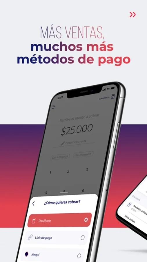 Abre la App, conecta tu datáfono e ingresa el monto a cobrar.