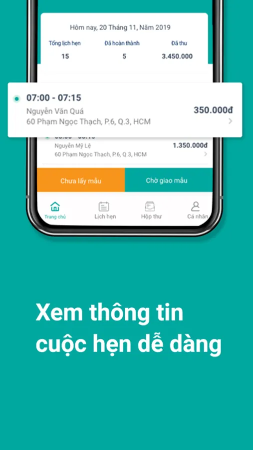 - Kiểm tra trạng thái lịch hẹn lấy mẫu